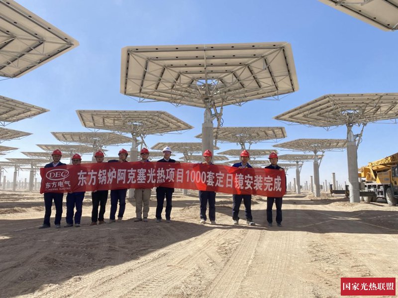 其中阿克塞110MW光热项目聚光集热系统第1000面定日镜于2023年7月26日正式出厂,完成成套安装,标志着东方锅炉在定日镜国产化进程中开启新的里程碑。