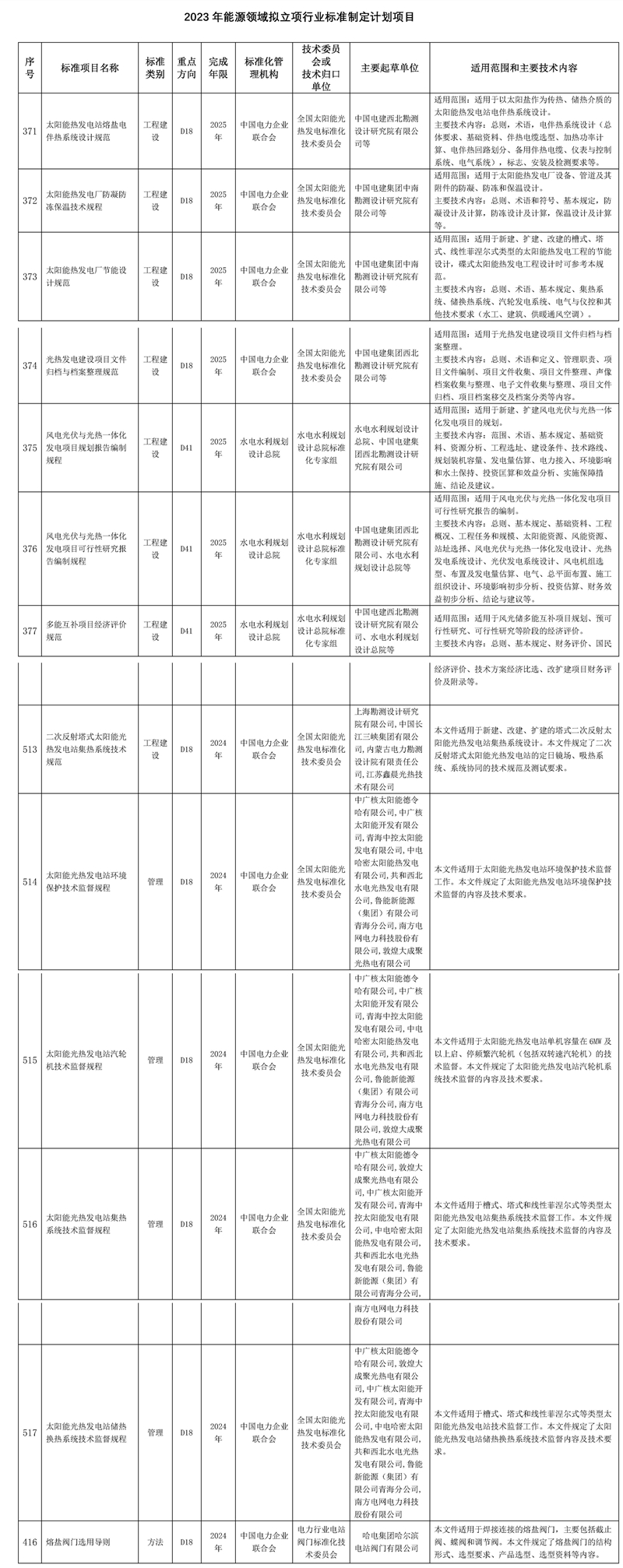 其中,2023年能源领域拟立项行业标准制定计划项目包含多项光热发电行业标准。