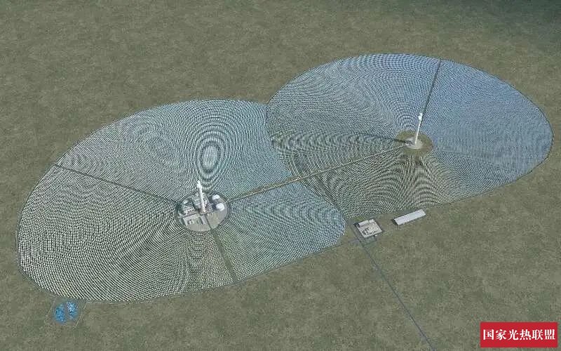 据介绍,“两塔一机”方案是指在光热电站设置两个相邻的吸热塔,两个吸热塔上的吸热器各自吸收定日镜反射的太阳光,并将吸热器内的介质加热至设计温度,继而利用高温介质直接(或间接)通过热力循环推动一台发电机发电。