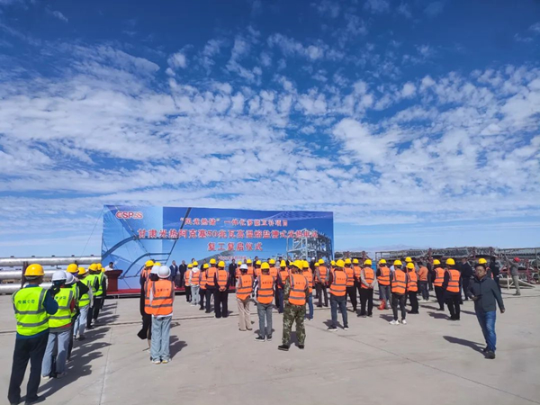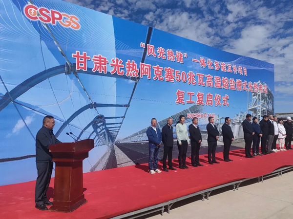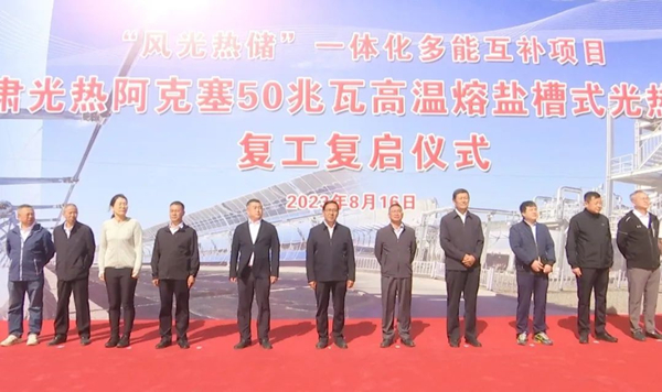 8月16日,甘肃光热有限公司50兆瓦高温熔盐槽式光热发电项目在四十里戈壁举行复工重启仪式。