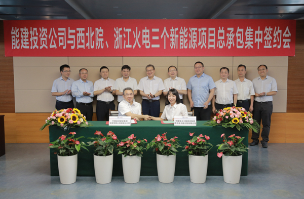 中国能建投资公司总工程师、新疆分公司总经理张军,西北分公司总经理卢新军,中电工程西北院党委委员、副总经理董绿荷,浙江火电机械与新能源分公司总经理赵文忠分别代表各方签约。
