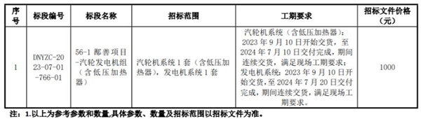 据公告,该项目工期要求为:2024年12月30日机组完成72+24小时试运行移交生产。
