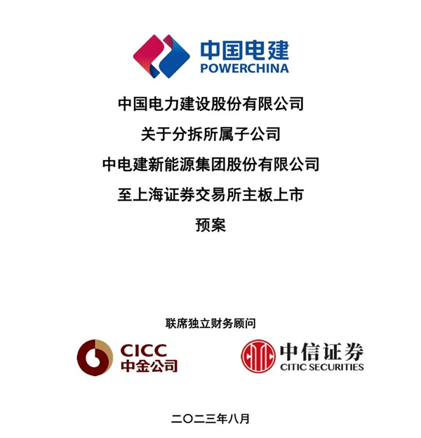 8月24日,中国电力建设股份有限公司(发布分拆预案公告称,拟分拆所属子公司中电建新能源集团股份有限公司(简称:电建新能源)至上海证券交易所主板上市。电建新能源将在获取上交所批准及中国证监会同意注册后择机发行。