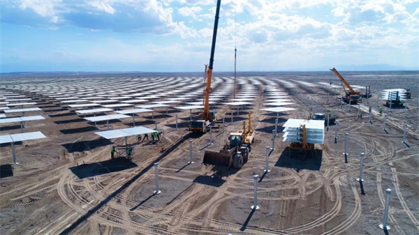 本项目共配置25594面30平方米的高精度智能定日镜。在定日镜组装、安装过程中,可胜技术项目团队凭借在多个光热项目上积累的丰富工程管理经验,精心组织策划、科学合理安排施工,克服了现场沙尘暴、大风等恶劣天气的影响,现已进入快速安装阶段,计划年底完成所有定日镜安装。目前项目各项工作全面推进中,土建工程已基本结束,正在开展吸热器、储罐、汽轮机等主设备安装工作,计划年底安装完成。