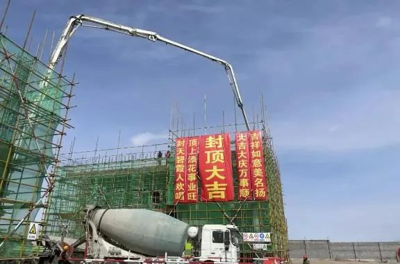 这是若羌光热工程项目首栋封顶的主体结构建筑,标志着若羌光热工程项目建设取得了阶段性的进展。