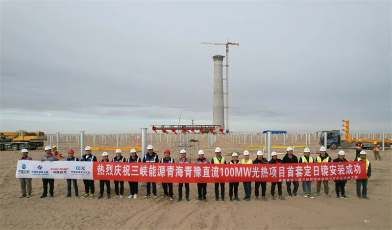 据国家光热联盟理事单位——浙江可胜技术股份有限公司(简称:可胜技术)消息,10月17日,由可胜技术参与联合体总承包的三峡能源青海青豫直流100MW光热项目首套定日镜顺利组装下线并完成现场安装,标志着该项目镜场已进入全面供货及安装阶段。
