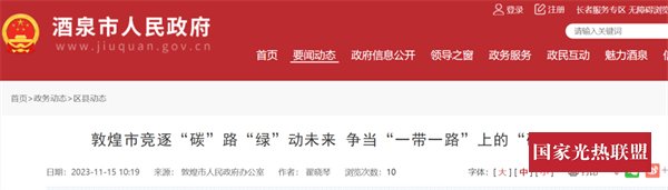 11月15日,《敦煌市人民政府办公室》发布题为《敦煌市竞逐“碳”路“绿”动未来 争当“一带一路”上的“碳”索引领者》的文章表示,国家能源集团“10万千瓦光热+48万千瓦风电+12万千瓦光伏项目”已取得省发改委批复,48万千瓦风电工程已核准。