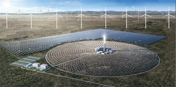 2024年2月26日,华电天山北麓戈壁基地610万千瓦新能源基地开工建设。该项目位于哈密巴里坤和伊吾县,总占地面积约990平方千米。项目装机容量610万千瓦,其中,风电420万千瓦、光伏180万千瓦、光热10万千瓦,配套建设120万千瓦/480万千瓦时的电化学储能装置。项目总投资超290亿元,依托煤电项目,采取风能、太阳能、火电、光热等多类型能源相互补充发电,结合储能技术的调峰调频,充分发挥了火电和储能设施的调节能力,极大提高电力供应的稳定性和可靠度。